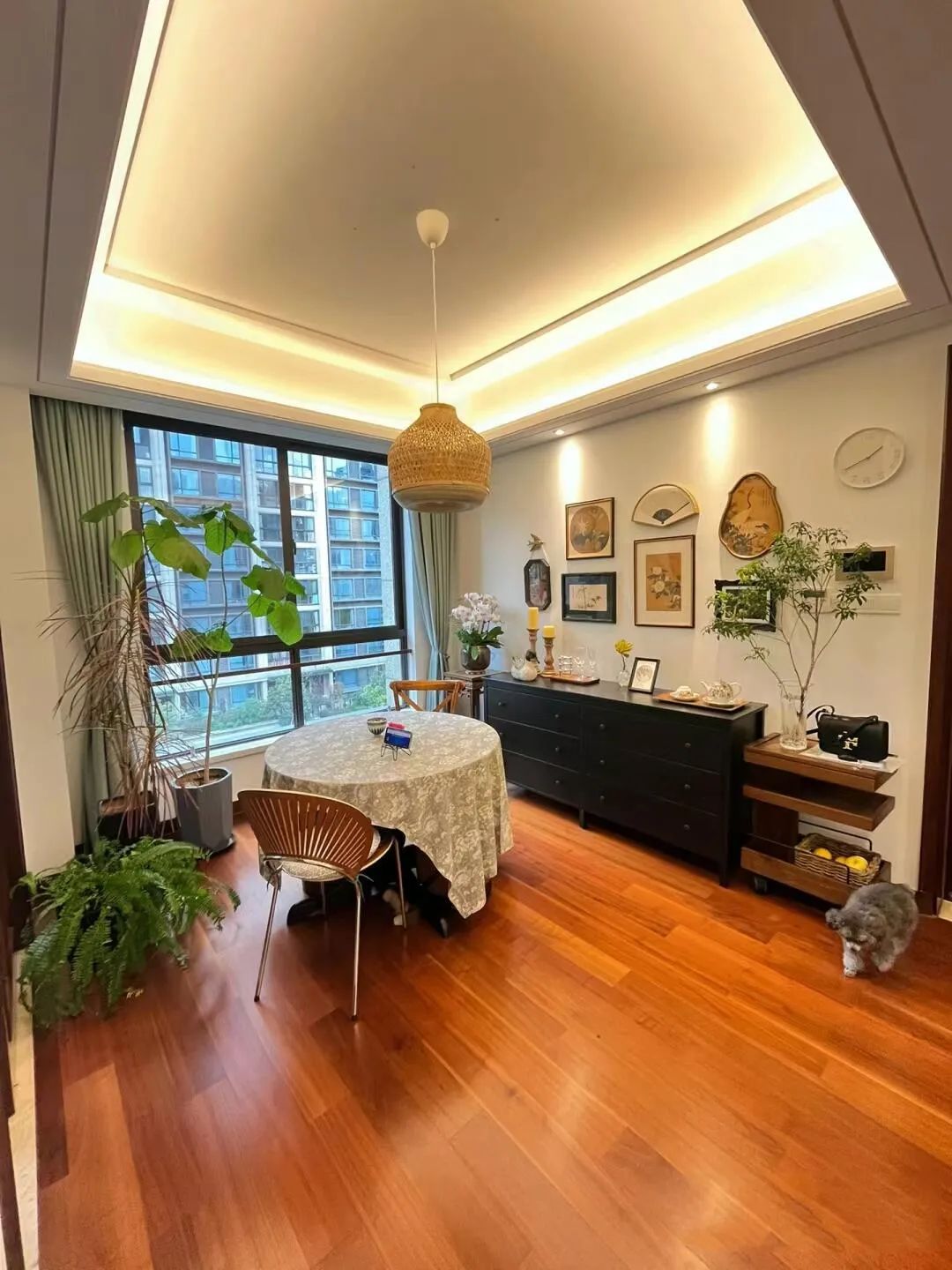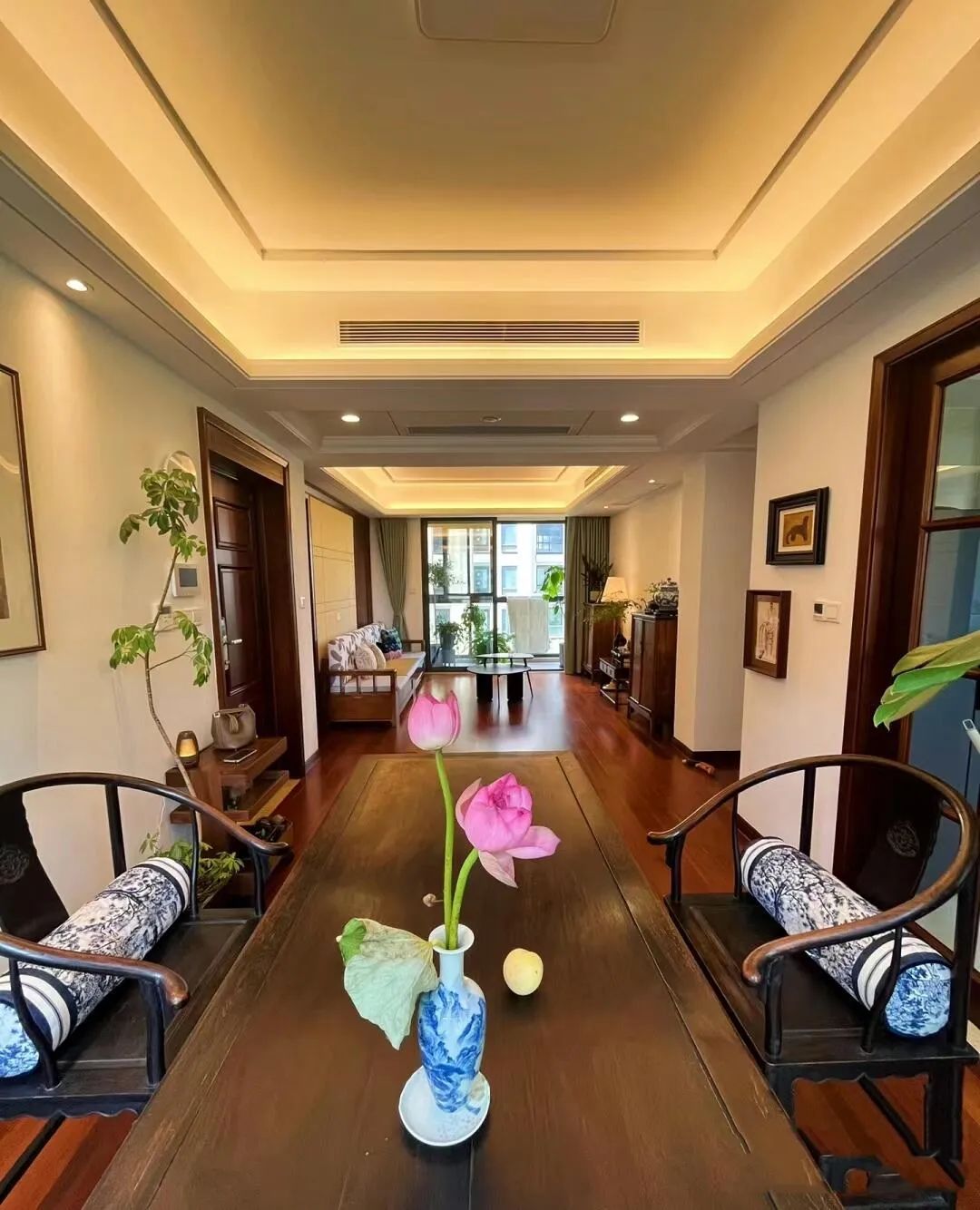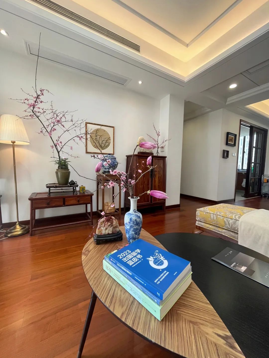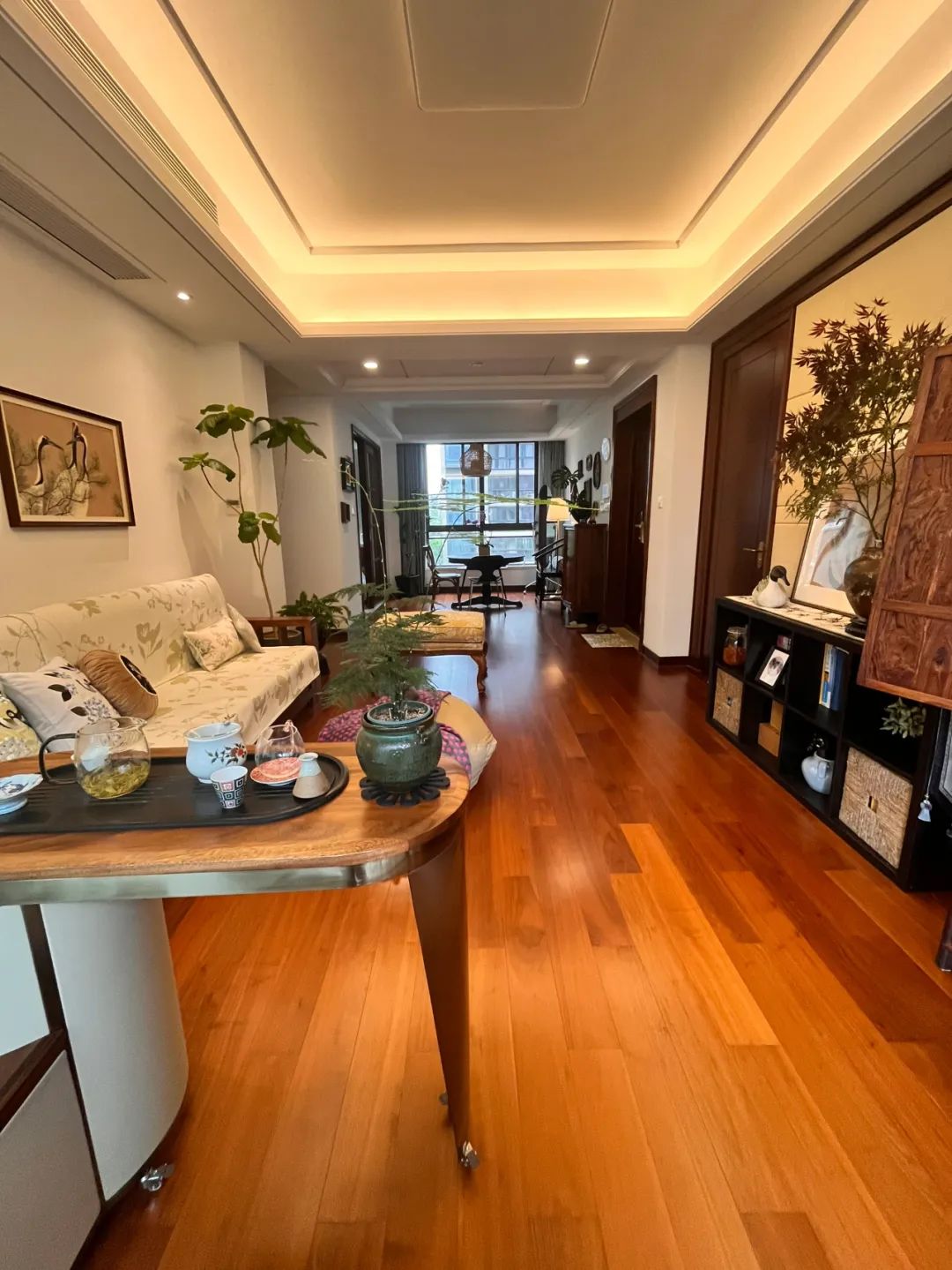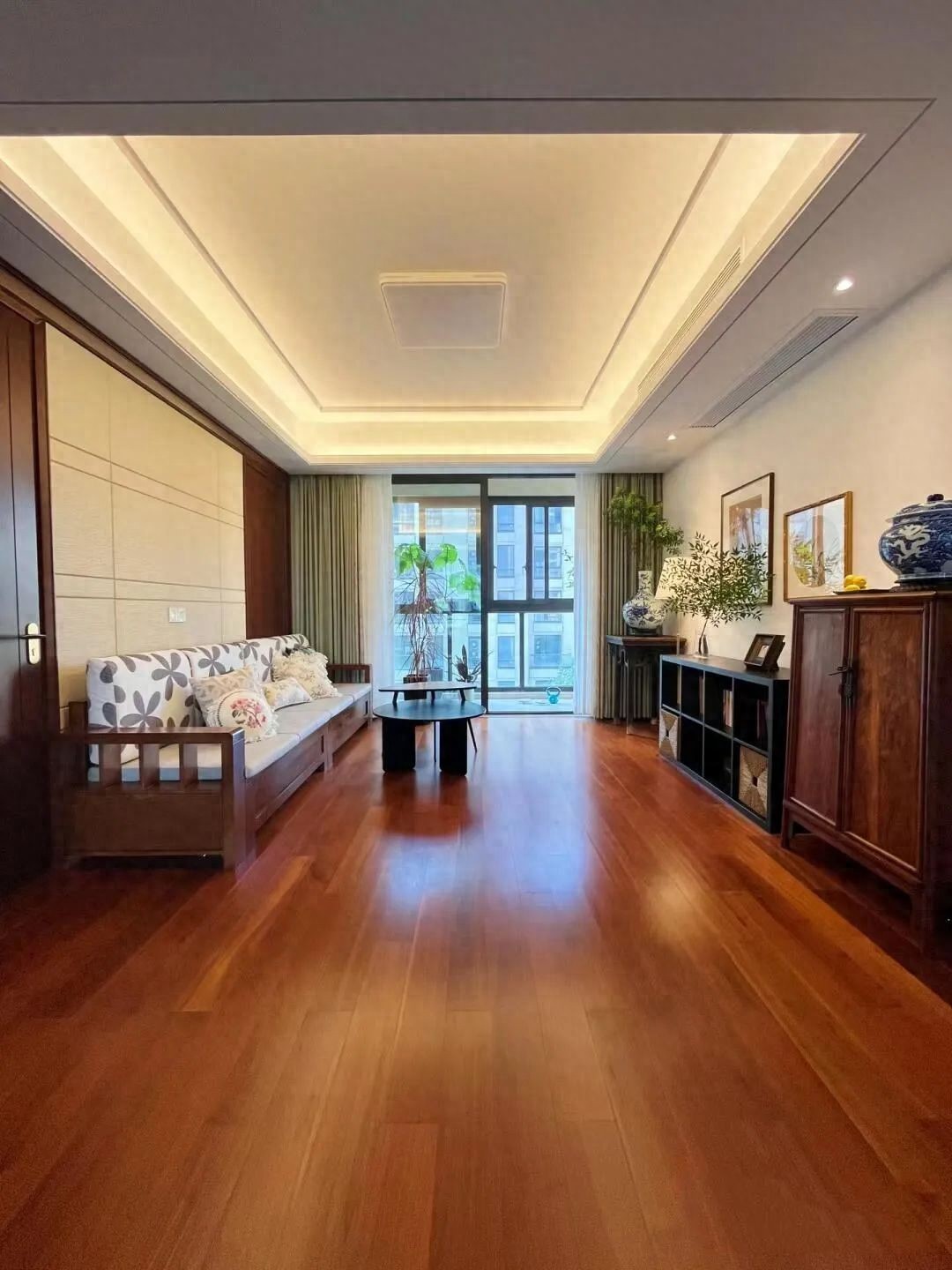 这木地板的颜色偏深,带着天然的那种木纹,既不过分张扬,又透着一种低调的高级感。